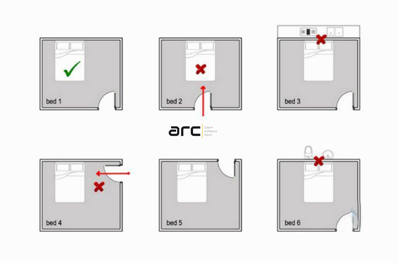 Giường ngủ đặt lệch hướng so với cửa sổ, cửa ra vào