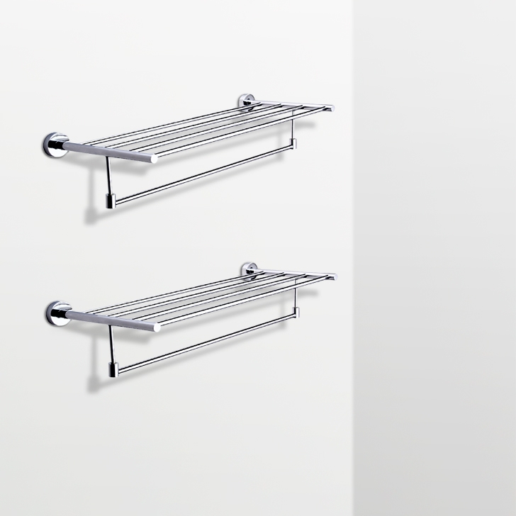 Khung thép chắc chắn, được đánh bóng và chịu lực tốt, bao gồm có 2 ngăn chính và 1 khung giúp cố định đồ vật cao và 1 ngăn dùng cho việc vắt khăn mặt hoặc khăn tắm.