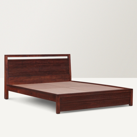 Độ cao giường vừa phải, góc cắt xéo tạo sự hài hòa trong tổng thể vững chắc.