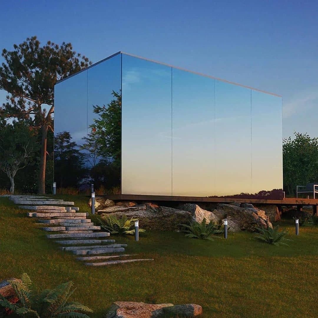 Ngôi nhà gương được thiết kế bởi kiến trúc sư OodHouses. OOD Cabin là một ngôi nhà tiền chế với ba gương phản quang, cách nhiệt tường kính và một bức tường gỗ xử lý nhiệt.
